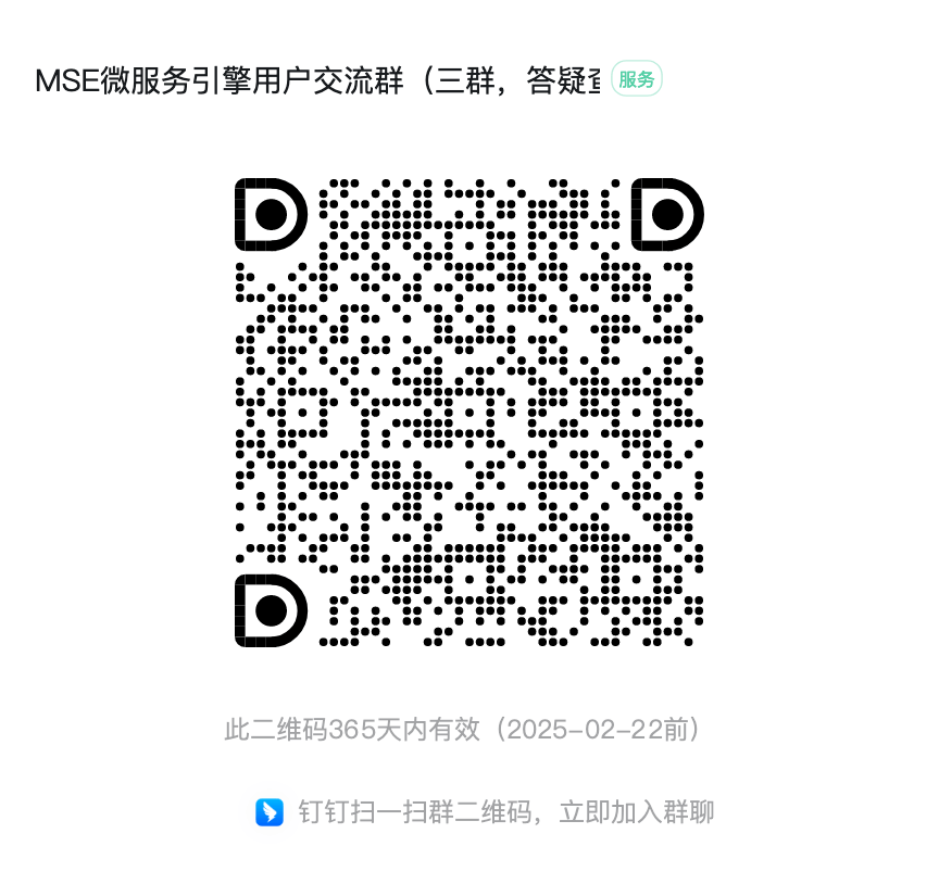 If you need Nacos enterprise service support, or purchase cloud product services, you can join the discussion by scanning the following DingTalk group. It can also be directly activated and used through the microservice engine (MSE) provided by Alibaba Cloud. https://cn.aliyun.com/product/aliware/mse?spm=nacos-website.topbar.0.0.0