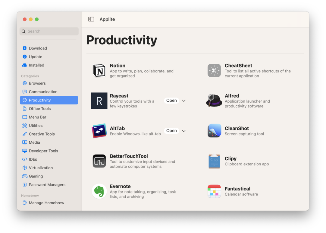 Audio • Backup • Browser • Chat • Crypto • Database • Dev • Editors • Graphics • Productivity • Utilities